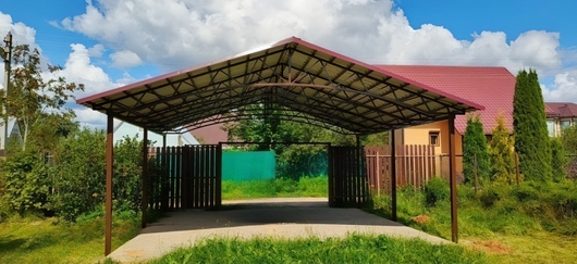 Двускатный навес с профнастилом для стоянки автомашин Арт-735